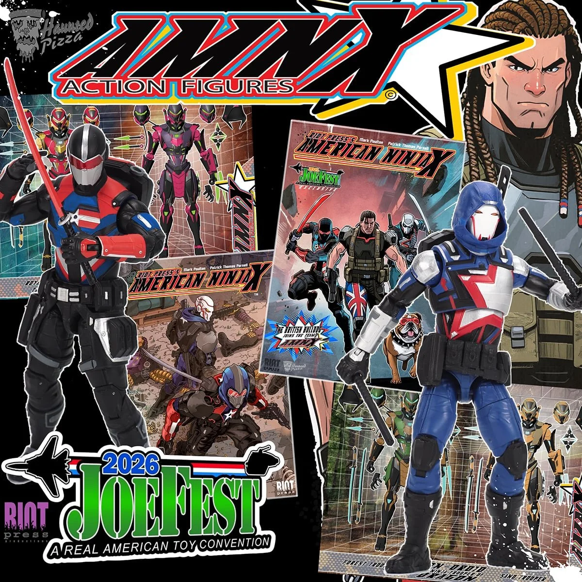 🚨 Riot Press Returns to Joe Fest! 🚨 Riot Press is coming back to Joe Fest and we’re bringing the heat with Johnny Phantasm, Last of the Seekers, and the AMNX Action Figure Line. Appearing at the booth will be Patrick Thomas Parnell (creator, writer & artist), Mark Poulton (co-creator & writer), David Vonner (Riot Press Toy Manager and industry legend), and Georgia Smith, daughter of WWF’s British Bulldog, Davey Boy Smith. The AMNX line is still moving strong, and Joe Fest is going to feature some major reveals, including an updated American Ninja X, an updated U.S. Assassin, the debut of Ninja Droid, a 6-inch military/superhero version of the British Bulldog, and a surprise figure that’s going to be one hell of a Hot Rod. Comics. Toys. Wrestling legacy. Joe Fest is going to be BIG for Riot Press — make sure you stop by the booth and see what’s next. 🔥