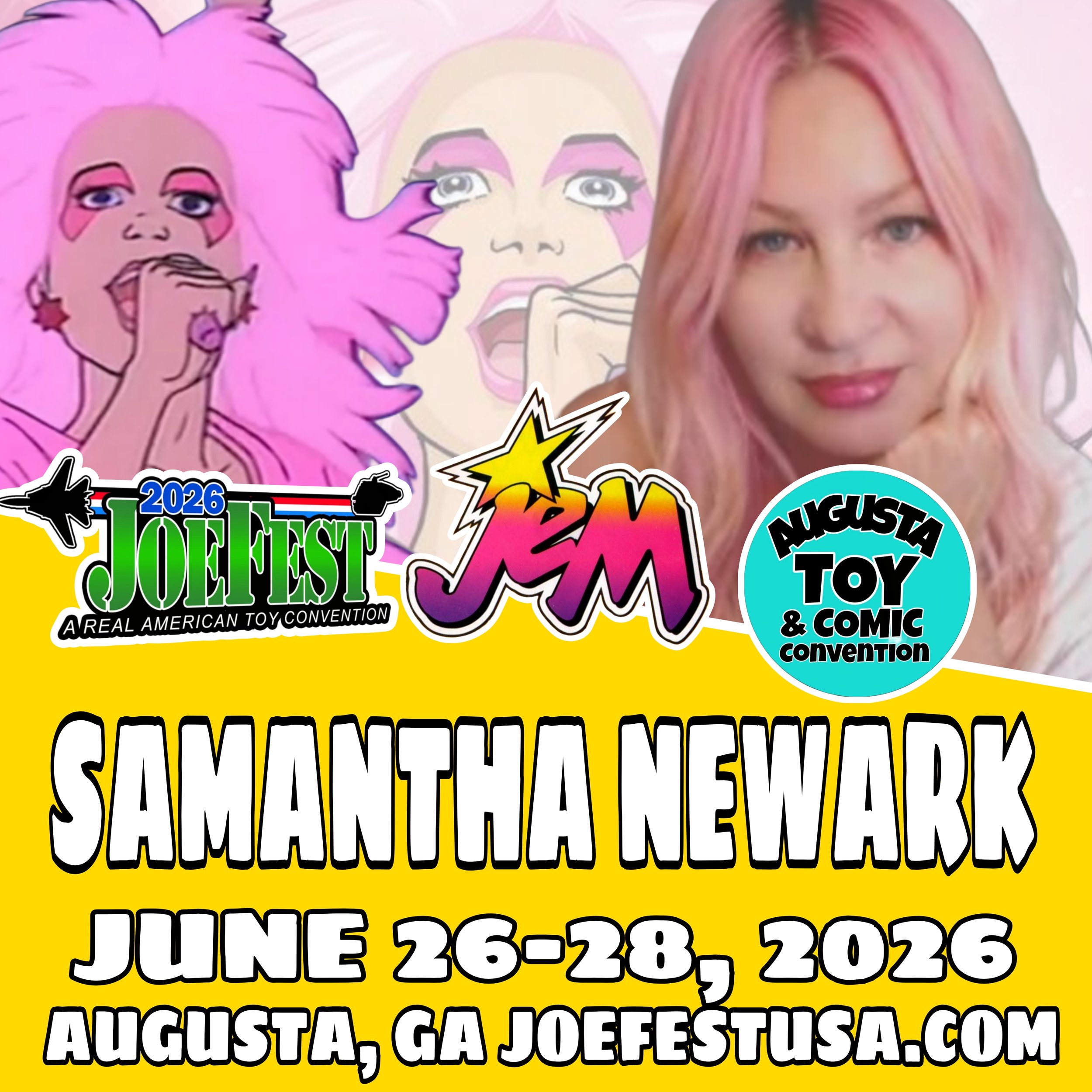 Please welcome Samantha Newark, the iconic voice of Jem and the Holograms, to 2026 JoeFest / Augusta Toy and Comic Convention this June 26-28, 2026, in Augusta, GA!
